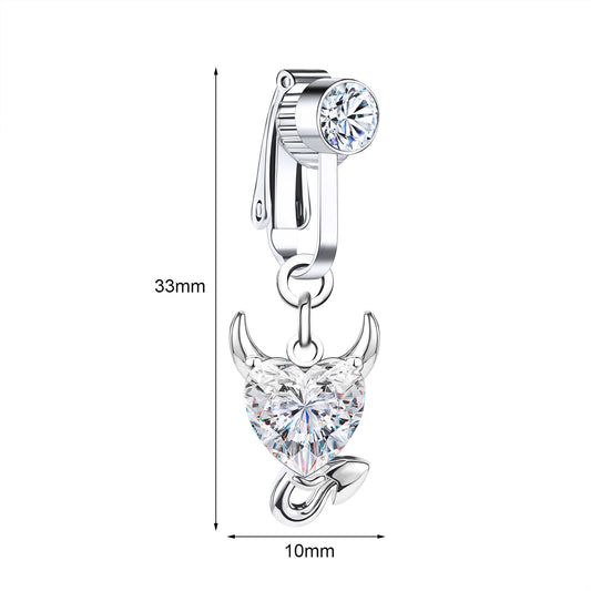 Demon Belly Button Rings with AAA Heart Cubic Zirconia