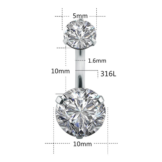14g Double Jeweled Prong Set Belly Button Rings Cubic Zirconia Belly Navel Piercing Jewelry