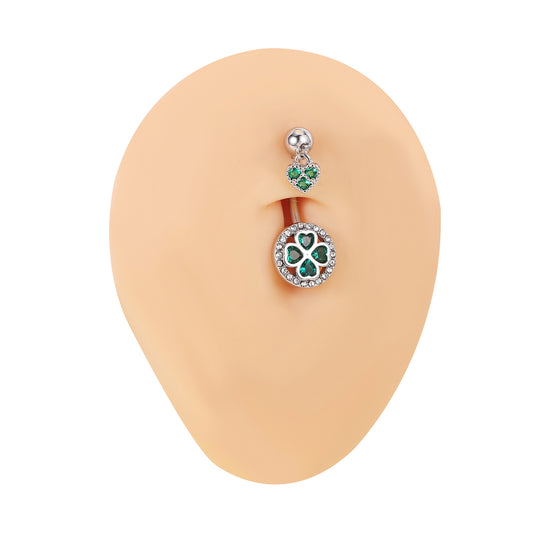 14G Heart Belly Navel Rings Lucky Green Zirconia Belly Button Rings
