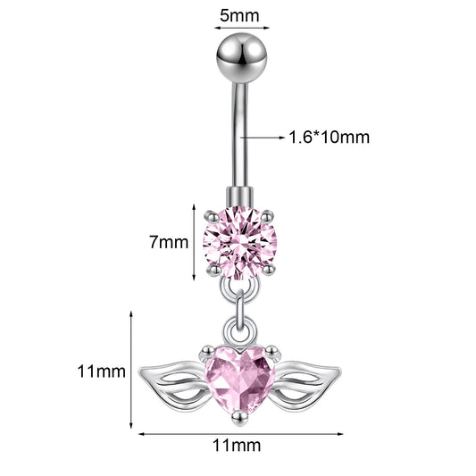 14G Double Wing Dangle Belly Navel Rings Pink Zirconia Belly Button Rings