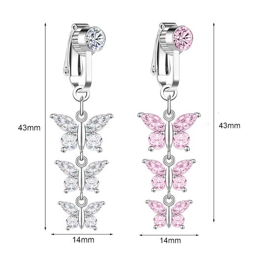 Regular price $9.99Regular priceUnit price / per$14.99Sale price $9.99Fake Butterfly Dangle Belly Navel Clip Pink White Cubic Zircon Belly Button Ring