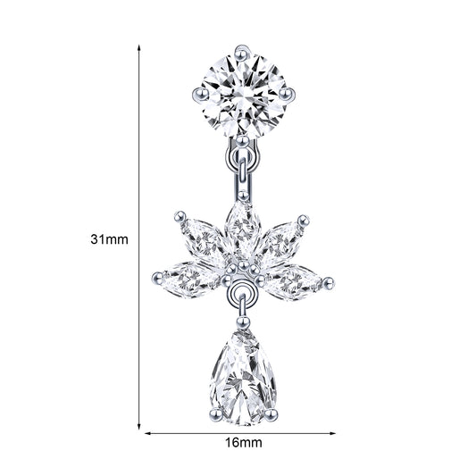 Flower Belly Button Rings Water-drop Crystal Dangle Belly Navel Piercing