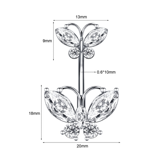 14g Double Butterfly Belly Button Ring Crystal Cute Navel Piercing Jewelry