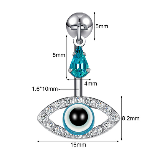 14G Evil Eye Belly Navel Rings Blue Crystal Belly Button Rings