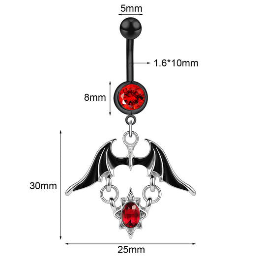 14G Bat Dangle Belly Navel Rings Cubic Zirconia Belly Button Rings