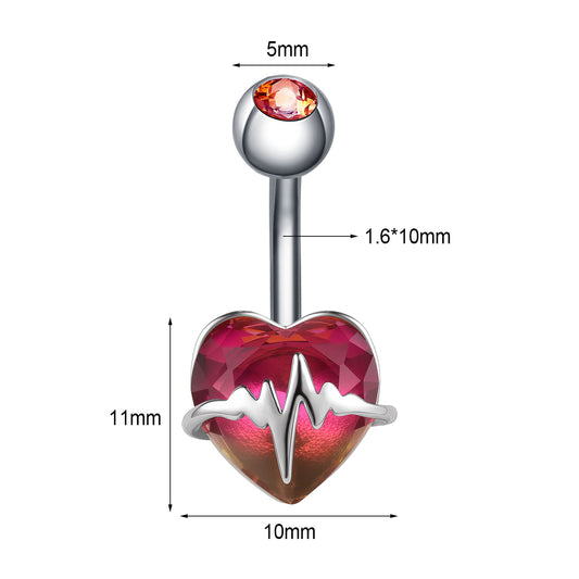 14G Heart Dangle Belly Navel Rings Bling Zircon Belly Button Rings