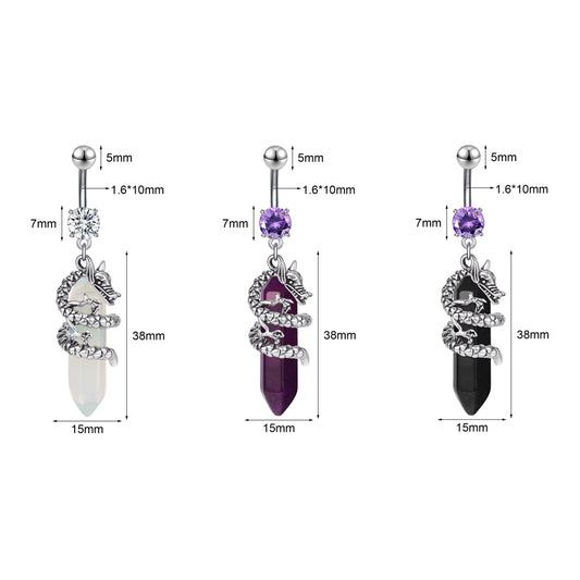 14G Chakra Opalite Belly Rings Dragon Navel Piercing Shiny Zirconia Belly Navel Button Rings