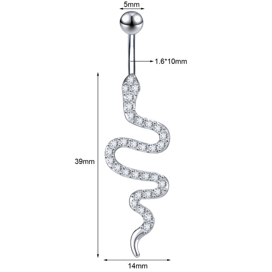 14g Snake Belly Button Rings Inset Cubic Zirconia Navel Piercing Jewelry