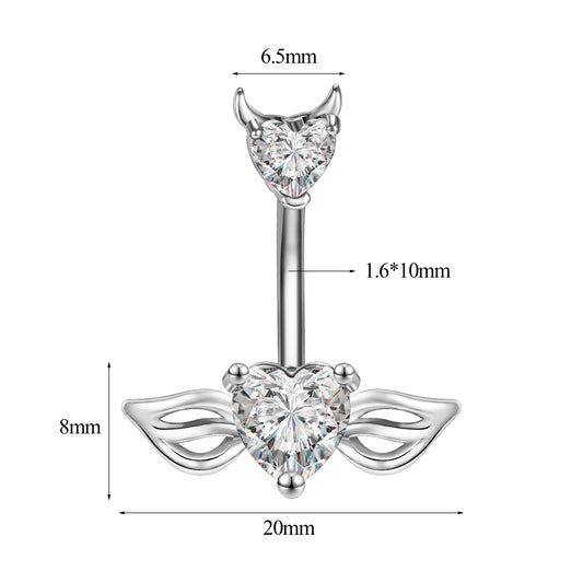 14g Demon Belly Button Rings Heart Crtstal Belly Navel Piercing