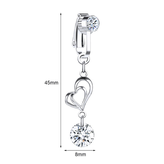 Fake Silver Belly Navel Clip Hollow Out Heart Belly Button Ring