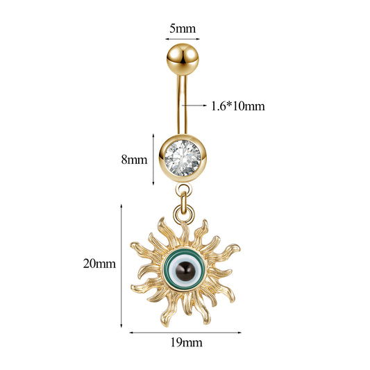 14g Gold Demon Eye Belly Button Rings Crystal Alloy Patteren Belly Navel Piercing