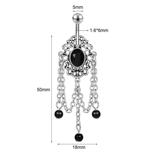 14G Tassels Belly Navel Rings Black Zirconia Belly Button Rings