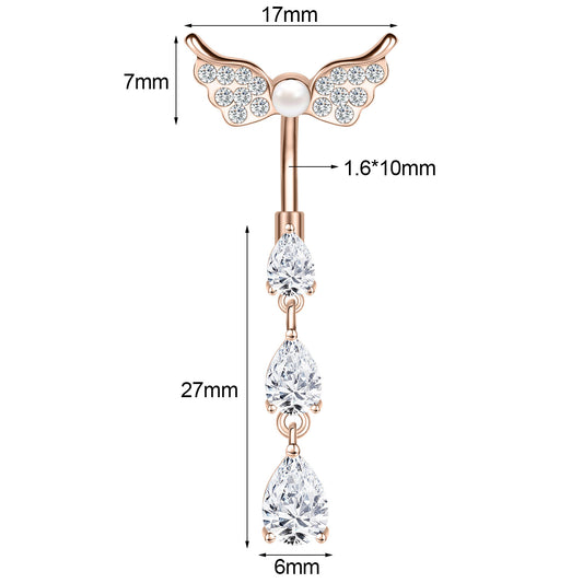 14G Double Wing Belly Navel Rings Bling Zirconia Belly Button Rings
