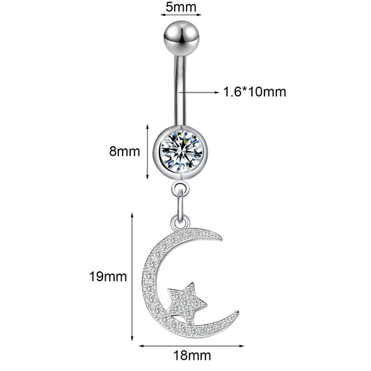 14G Moon Dangle Belly Navel Rings Clear Crystal Belly Button Rings
