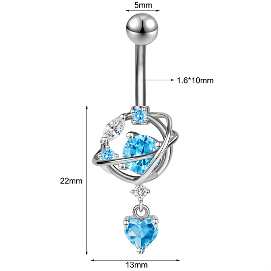 14G Heart Dangle Belly Navel Rings Blue Zircon Belly Button Rings