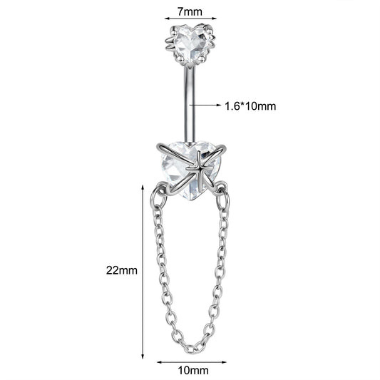 14G Heart Zircon Belly Navel Rings Stainless Steel Belly Button Rings