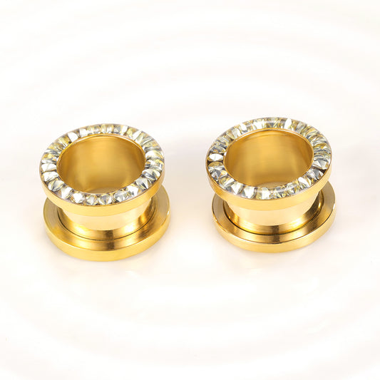 Regular price From $9.99Regular priceUnit price / per$15.99Sale price From $9.991 Pair Ear Plug Tunnel Clear CZ Crystal with Coating Gold Stainless Steel Ear Gauges