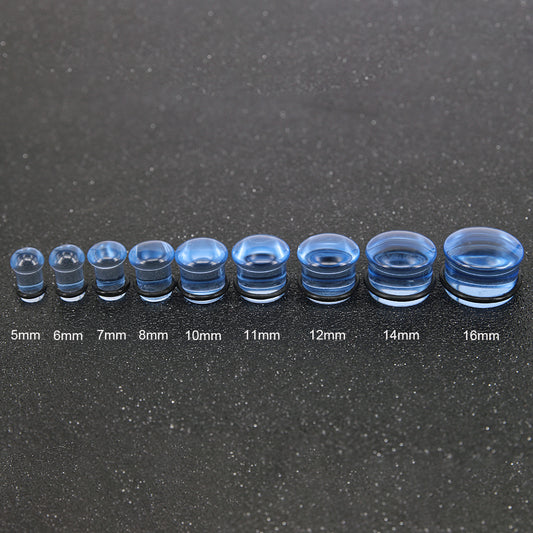 1 Pair 5-16mm Ear Plug Tunnel Blue Glass Ear Gauge Single Flare Ear Expanders