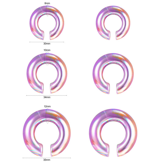 1 Pair C Shaped Ear Plugs Tunnel Pink Glass Stretching Earring Ear Gauge Expanders