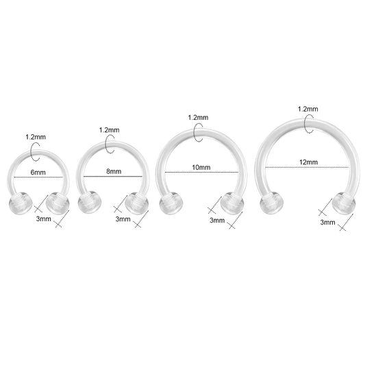 16G Transparent Bioflex Nose Septum Ring Horse Shoe Conch Helix Cartilage Piercing