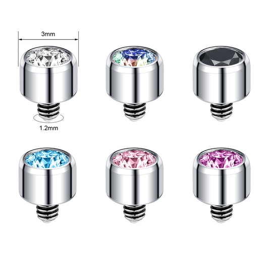 6pcs Crystal Dermal Anchor Tops Surgical Steel Internally Threaded Skin Diver Piercings