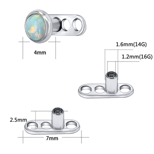2 Pcs 14g White Opal Dermal Anchor Tops & Surgical Steel Base Microdermals