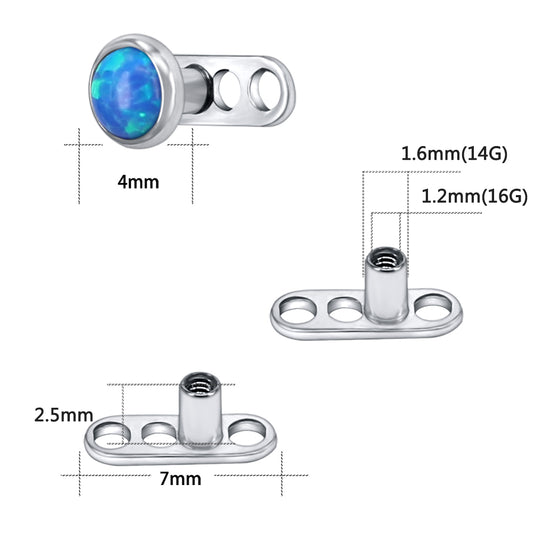 14g Blue Opal Dermal Anchor Tops & Surgical Steel Base Microdermals
