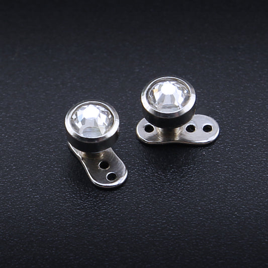2 Pieces 14g Crystal Dermal Anchor Tops & Surgical Steel Base Micro Dermals