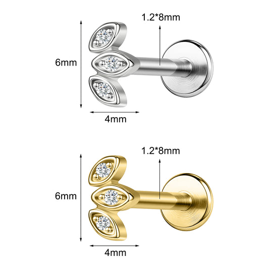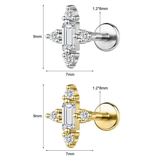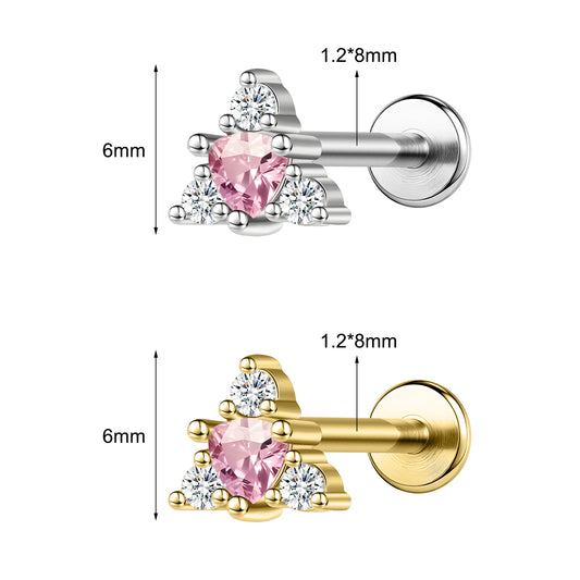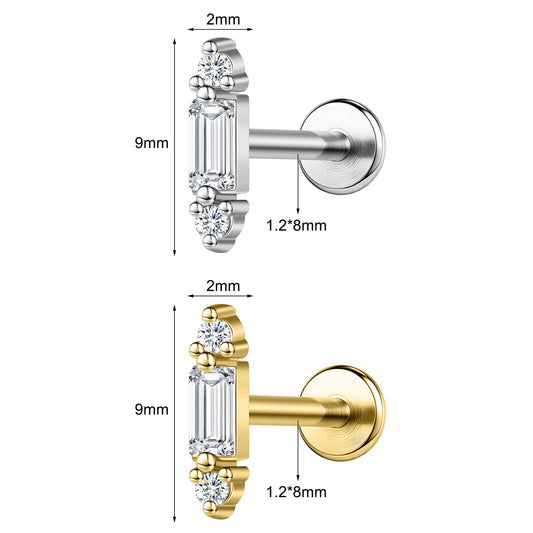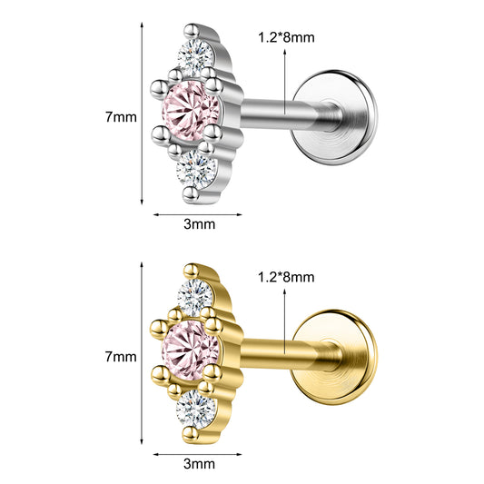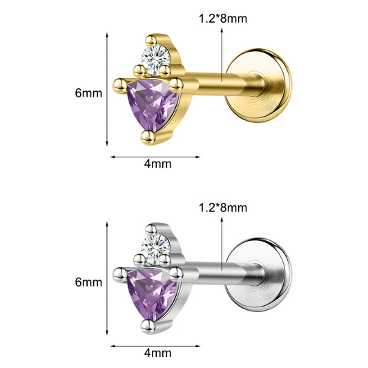 16g Triangle Zircon Labret Ring Flat Back Stud Earring Conch Helix Lip Piercing