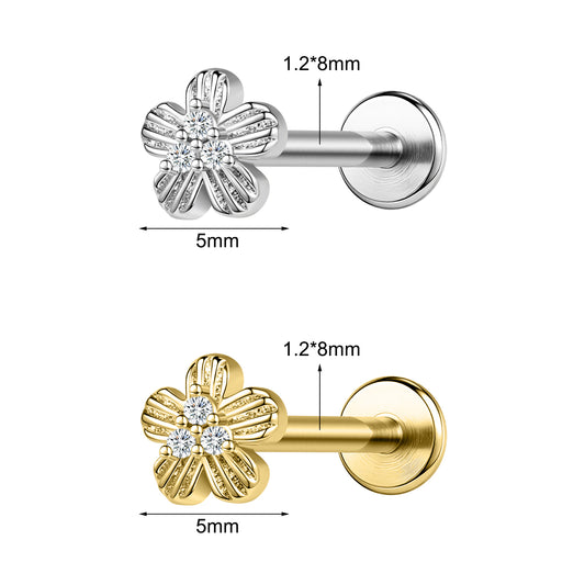 16g Flower Labret Ring Flat Back Stud Earring Conch Helix Lip Piercing