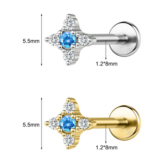 16g Flower Labret Ring Flat Back Stud Earring CZ Conch Helix Lip Piercing