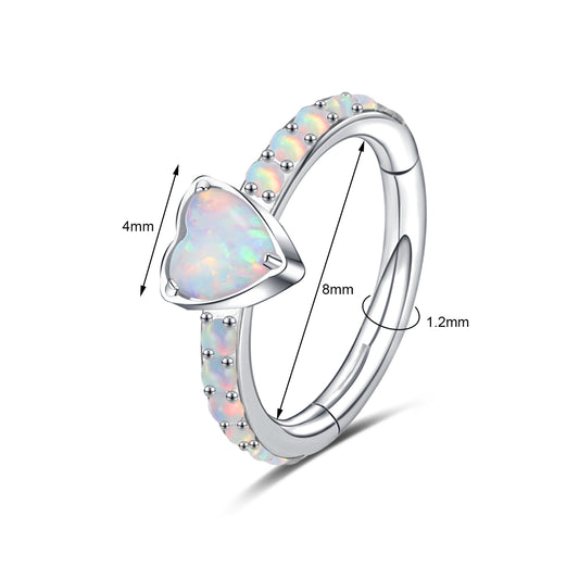 16G Heart Opal Septum Clicker Nose Ring Cartilage Helix Piercing