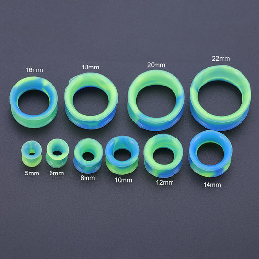 5-22mm Thin Silicone Flexible Blue Green Ear Tunnels Double Flared Expander Ear Gauges