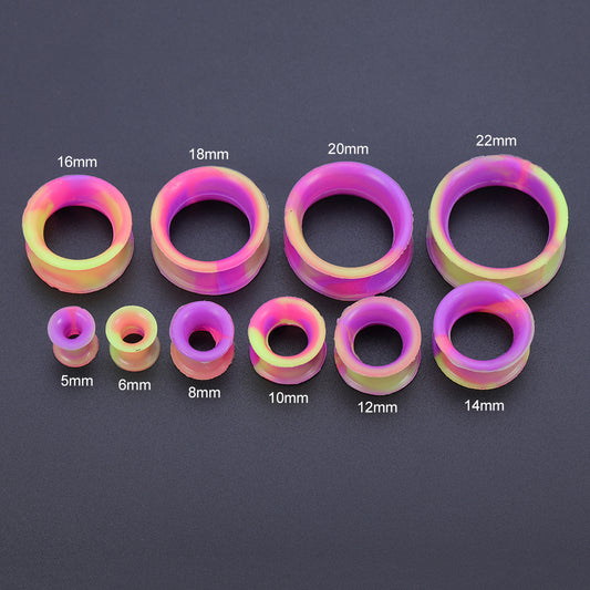 5-22mm Thin Silicone Flexible Pink Purple Yellow Ear Tunnels Double Flared Expander Ear Gauges