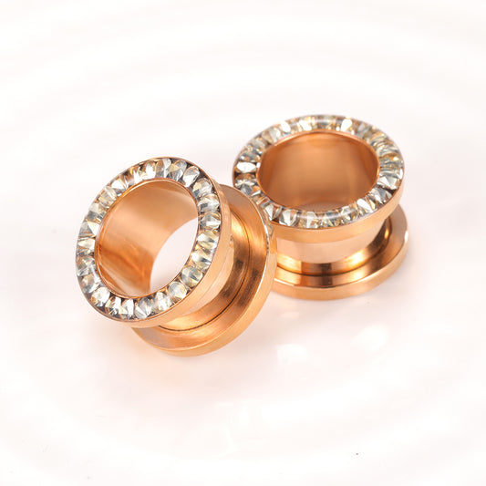 1 Pair 3-25mm(8g-1") Plugs and Tuunels CZ Crystal Rose Gold Stainless Steel Ear Stretchers