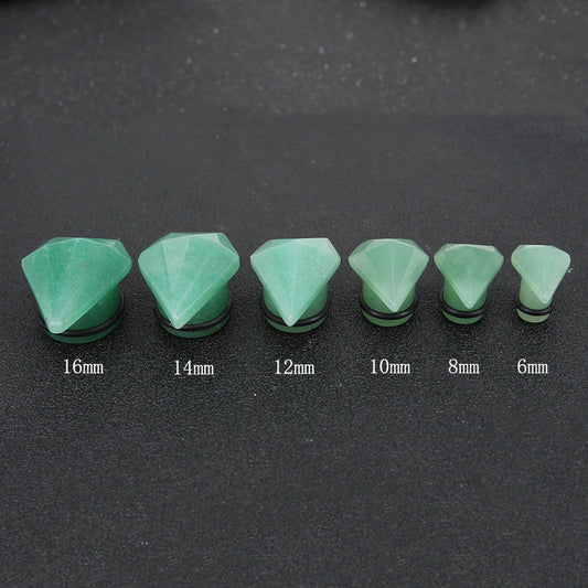 6-16mm Green Aventurine and Color-Stone Diamond-Shape Ear Plug Gauge Single Flare Ear Expander