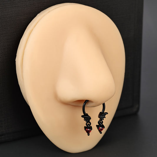 16g Heart Dangle Nose Ring Red Zircon Septum Piercing Halloween Jewelry
