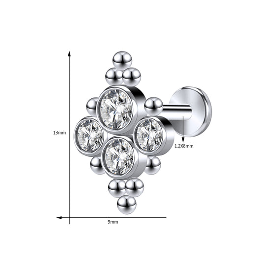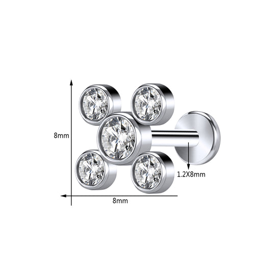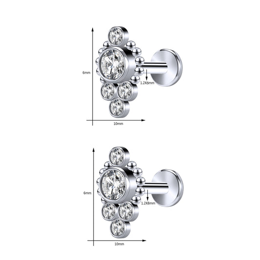16G Flower Zircon Labret Rings Round Tragus Helix Conch Piercing