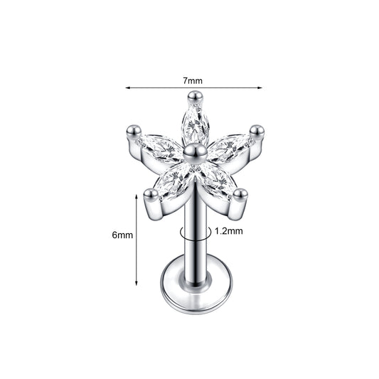 16G Flower Labret Rings Stainless Steel Ball Tragus Helix Conch Piercing