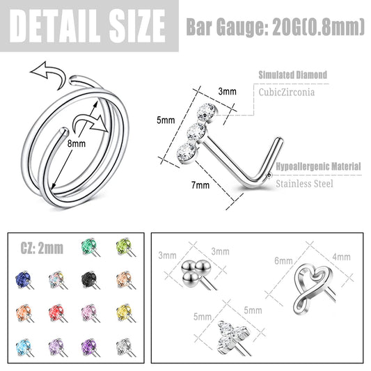 Regular price $12.99Regular priceUnit price / per$15.19Sale price $12.9914Pcs/Set Cubic Zirconia Nose Stud Piercing L Shaped-Economic Set