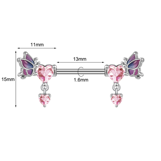 2Pcs 14G Heart Dangle Nipple Rings Pink Zircon Nipple Piercing Barbell Jewelry