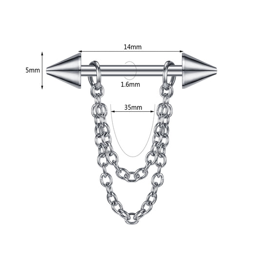 2pcs 14G Dangle Chain Nipple Barbell Ring Spike Nipple Piercing