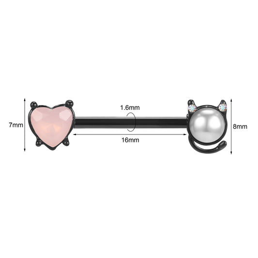 2pcs 14G Cat & Pearl Nipple Barbell Ring Pink Heart Nipple Piercing