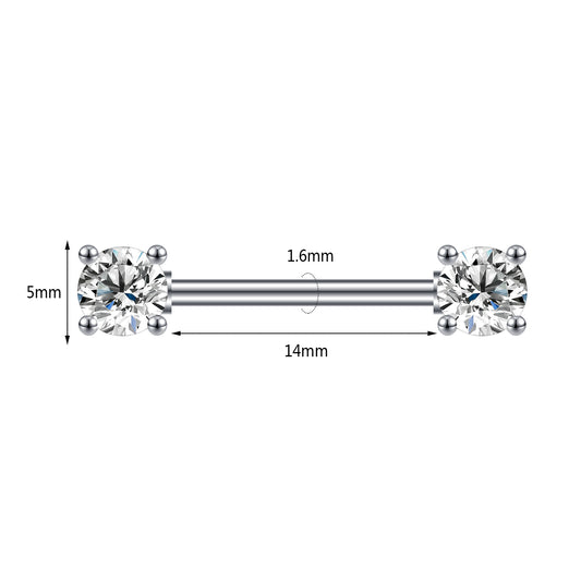2pcs 14G Simple Nipple Barbell Ring Round Crystal Silver Nipple Piercing