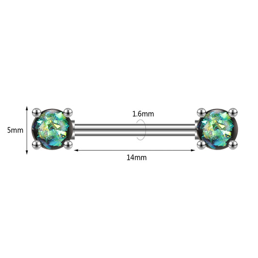 2pcs 14G Rainbow Opal Nipple Barbell Ring Claw Nipple Piercing