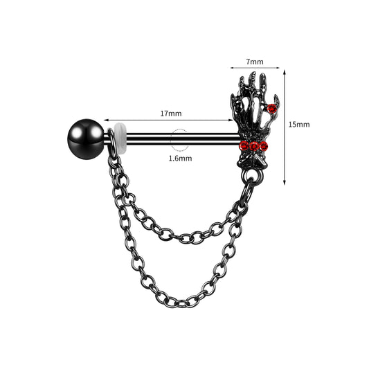 2Pcs 14G Skull Claw Nipple Rings Crystal Nipple Piercing Barbell Jewelry