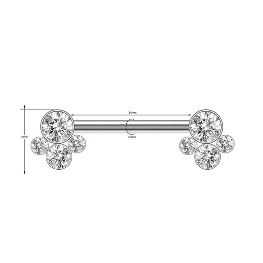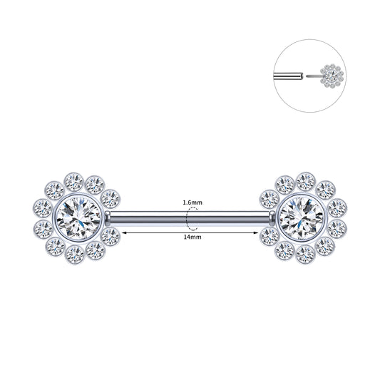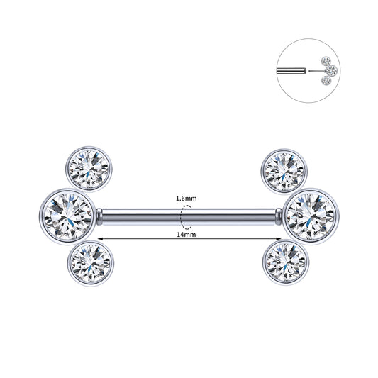 2pcs 14G Plug-in Nipple Ring White Crystal Nipple Piercings
