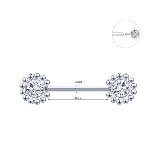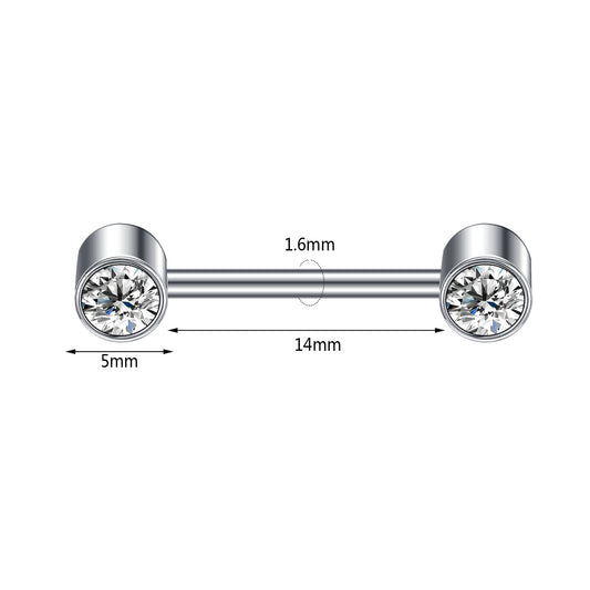 2pcs 14G Simple Nipple Ring Sliver Crystal Nipple Piercing