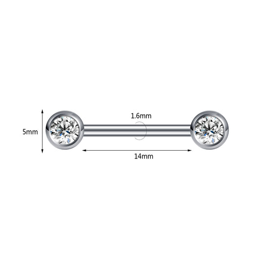 2pcs 14G Simple Nipple Barbell Ring Round Crystal Black Nipple Piercing