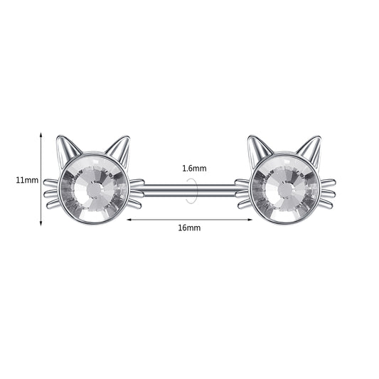 2pcs 14G Silver Cat Nipple Barbell Ring Claw Nipple Piercing